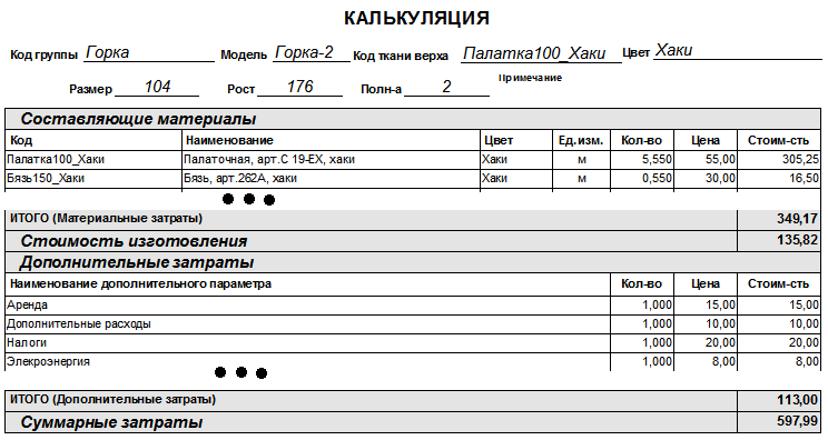 Для каждой модели заполняются конфекционная карта, составляющие материалы, фурнитура и нормы их расхода