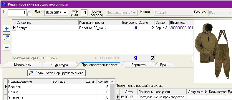 Система предоставляет возможность получить сведения о количестве раскроенных, отшитых и готовых изделий, и об отклонениях от плановых показателей
